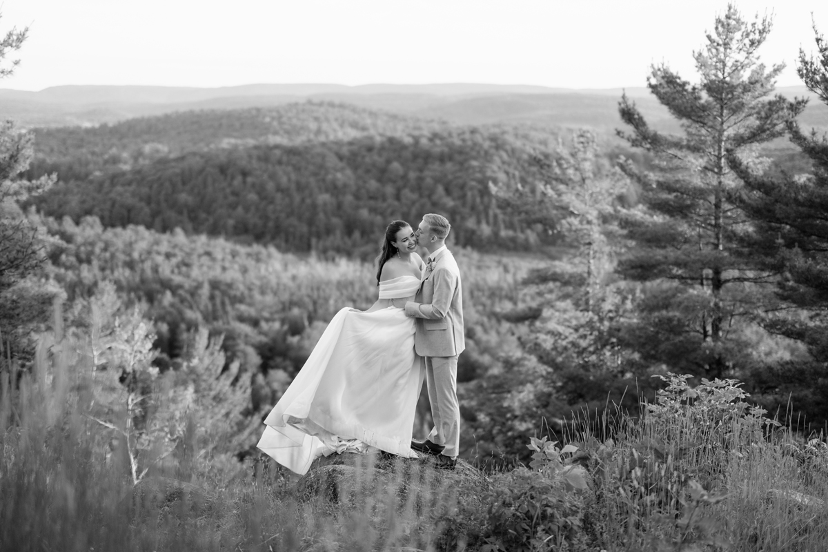 I’m a wedding photographer, gardener, cocktail enthusiast, and proud mom of two young girls. I live just outside of Wakefield, Quebec with my husband Josh (we were high school friends who turned into something more), our daughters Wren and Sunny, two cats named Percy and Pinto, and a Rottweiler, Pineapple. Josh and I got married at a lakeside cottage back in 2017, so I have a special love for weddings that feel personal and grounded in nature.