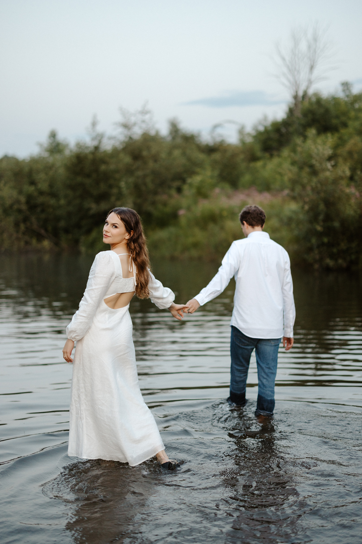 As the sun set they had a picnic amongst the wildflowers, clinking glasses of champagne and celebrating their soon to be marriage. Hand in hand, they wandered through fields of tall grass as the sun set behind the Gatineau hills and we finished up with a stroll through a sandy creek (which was incredibly tough to get too, high five for these two for powering through that one!).